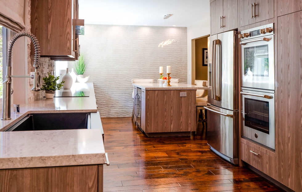 Natural stone was selected for the backsplash, adding warmth and a luxurious feel to the space.